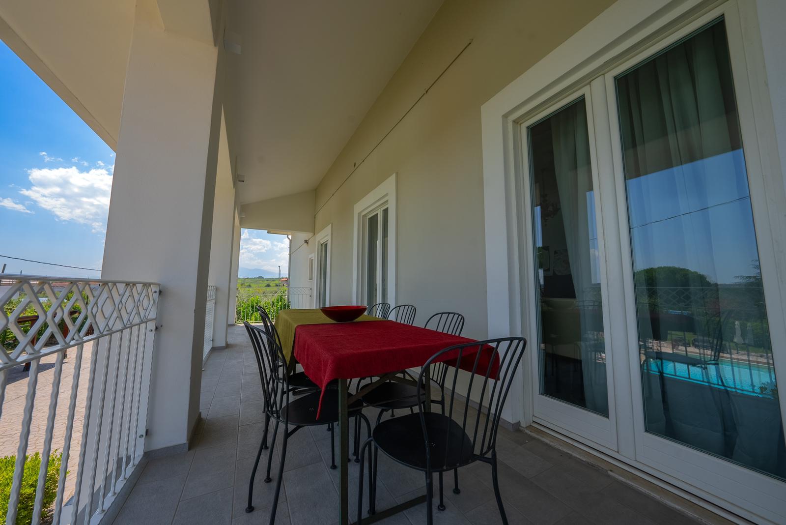 E’ l’appartamento più grande, è al piano superiore, di circa 140 mq e può accogliere fino a 14 ospiti e si articola su due piani comunicanti. Al primo piano si trovano una spaziosa cucina, un ampio tinello con camino, un elegante salone con terrazza panoramica affacciata su piscina con uso esclusivo, giardino, oltre a tre luminose camere da letto dotate di ogni comfort. La mansarda, di circa 100 mq, completa la residenza con una seconda cucina, un salotto confortevole con divano e due accoglienti camere da letto. Una scala interna collega armoniosamente i due piani, creando un ambiente ampio e raffinato, ideale per famiglie e gruppi che desiderano vivere un soggiorno indimenticabile.