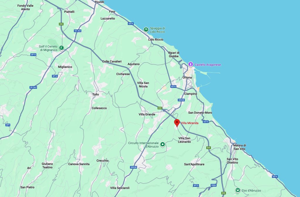 Villa Miranda sorge in un’oasi di pace tra mare e montagna, immersa in un verde silenzioso e rilassante, a pochi chilometri dall’uscita autostradale di Ortona, dal centro cittadino e dalla suggestiva Costa dei Trabocchi.